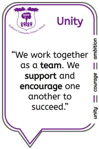 Our inclusive and nurturing environment promotes our key values of Unity, Courage and Ambition.